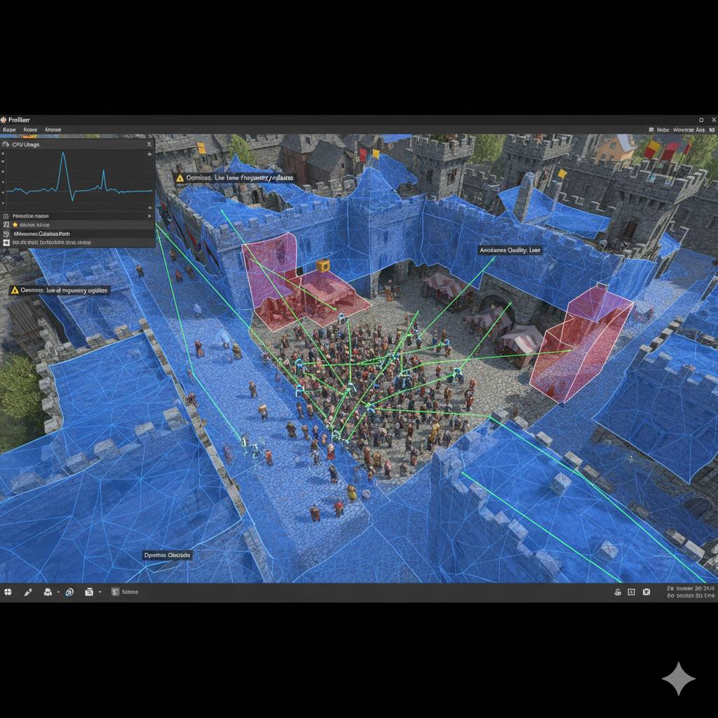 W grach RPG często spotykamy się ze scenami, gdzie dziesiątki, a czasem setki postaci niezależnych (NPC) wędrują po świecie. Jeśli każda z nich ma płynnie omijać przeszkody i dotrzeć do celu, potrzebujemy efektywnego systemu nawigacji. W Unity narzędziem do tego jest NavMesh. Jednak przy dużej liczbie jednostek, niewłaściwa konfiguracja NavMesh i użycie NavMesh Agentów może szybko zabić wydajność.